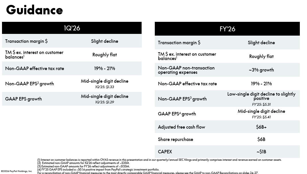 The Core Problem: Branded Checkout This is the heart of the issue. Branded checkout growth (the PayPal button you see at online checkout, their highest-margin business) collapsed from 6% in Q4 2024 to just 1% in Q4 2025. This is critical because it's the most profitable business and what differentiates PayPal from competitors.