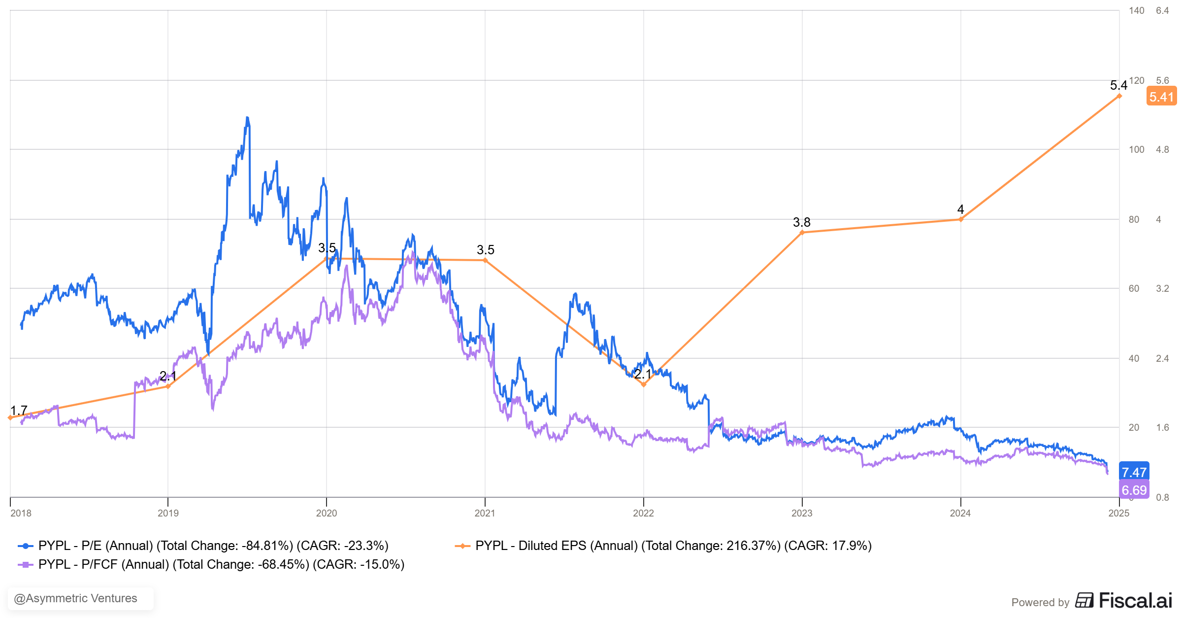 From extreme multiples during 2021-2022 period of 50+ times FCF, to reasonable multiples of around 15x earnings until the recent crash.