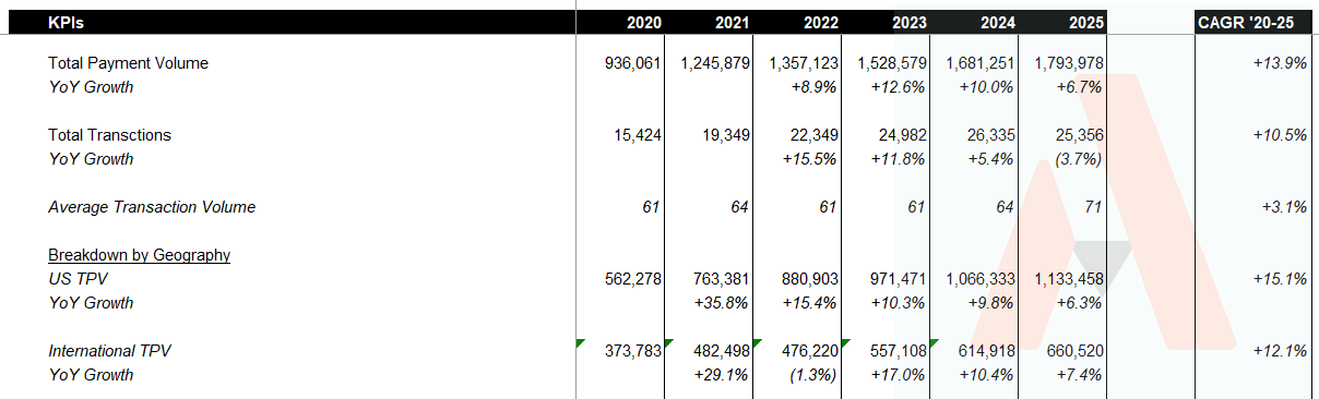 Total Payment Volume (TPV) growth remains solid at +6.7% YoY