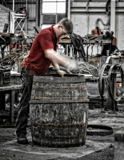 The business model requires long-term planning: once the wood is sourced, it can take up to 36 months before barrels are ready.